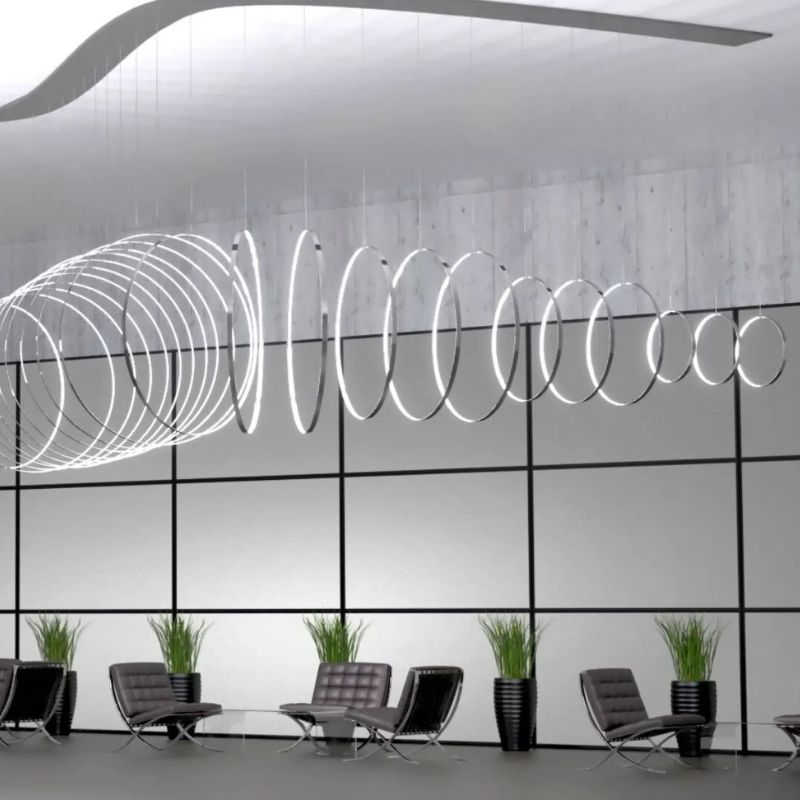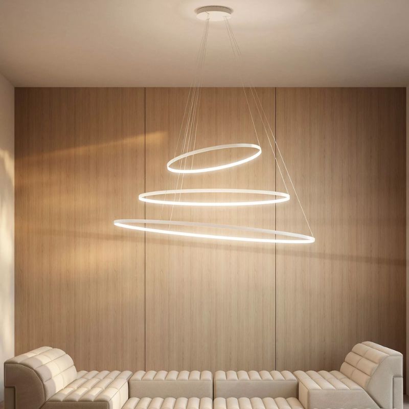 En Rings loftlampe fås i forskellige diametre, og hver ring er uafhængig, så det er muligt at skabe kompositioner i enhver form og størrelse.